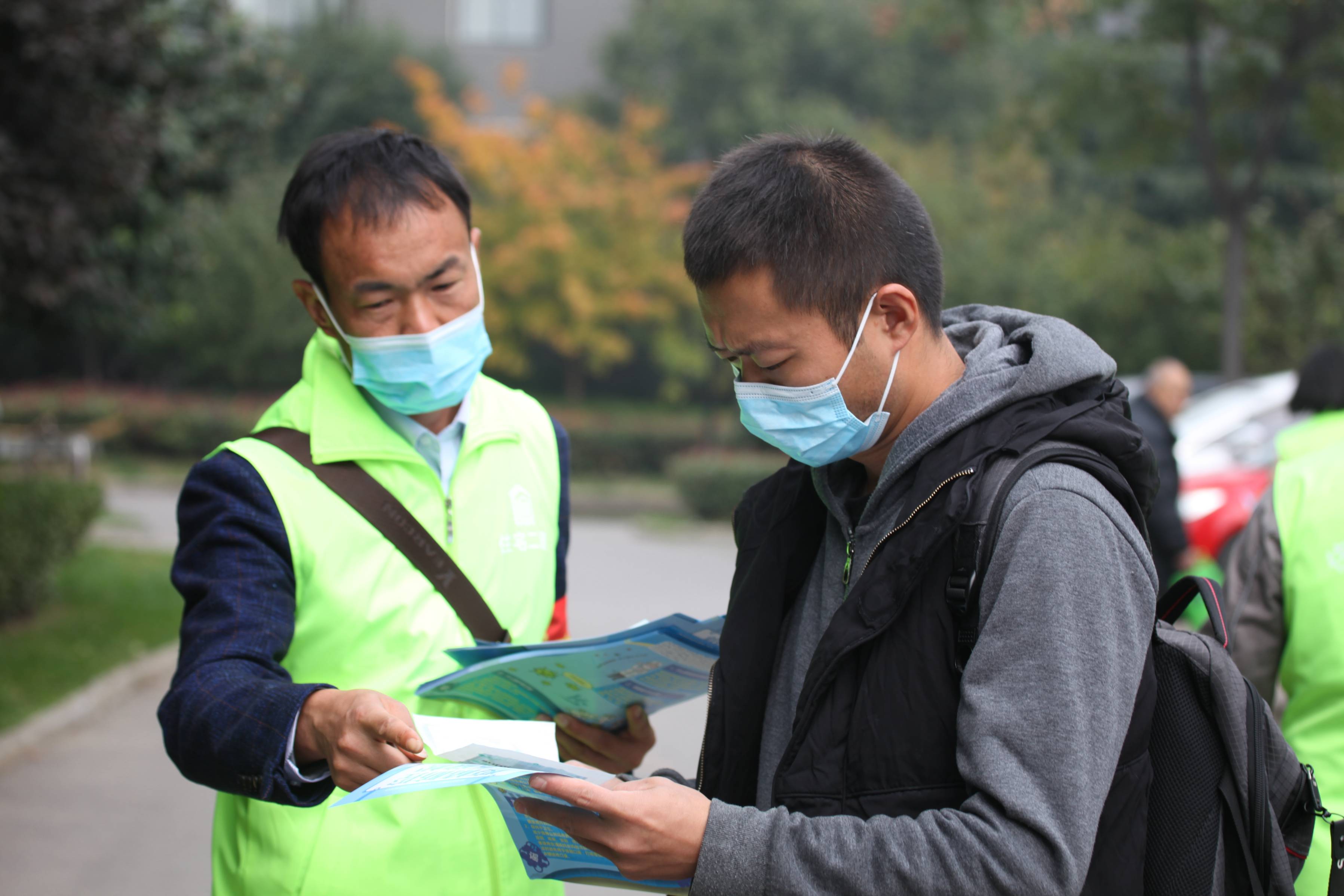 結束項目現場的服務活動,志愿者團隊立即趕往經發新北居保障房小區,在新北居物業的協助下,一同向居民耐心細致的進行防疫知識講解,督促大家自覺佩戴口罩、減少日常聚集、養成良好衛生習慣、積極動員居民主動接種疫苗等。同時發放公司制作的《新型冠狀病毒防控知識》宣傳頁,引導居民增強防控意識,做好科學防護,進一步提升居民疫情常態化下的防護能力。為感謝對新北居物業對本次活動的大力支持,志愿者團隊為新北居物業送上消毒液和個人防護用品。