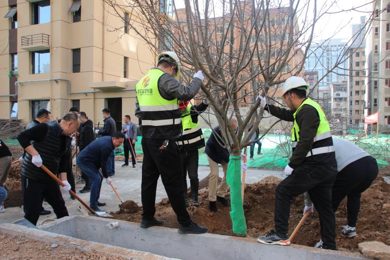 3月9日上午10點,在我公司黃金嘉境項目部現場開展本次植樹活動,西安大興新區開發建設管委會、西安聞達置業有限公司(建設單位)、西安市住總建設集團有限公司(總包單位)、陜西科興源工程管理有限公司(監理單位)領導帶隊,共同開展“植綠護綠·和諧共生”為主題的志愿植樹活動,參與植樹活動的志愿者共五十余人,總計植樹近30棵。